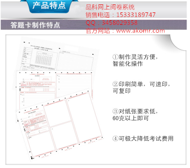 ●答題卡印刷方式可以是膠印、速印、靜電復印或激光打印;答題卡可以由使用單位自行設計、自行印刷;除了能識別自己格式的答題卡外也必須能掃描識別多種來源多種格式的網上閱卷答題卡。
